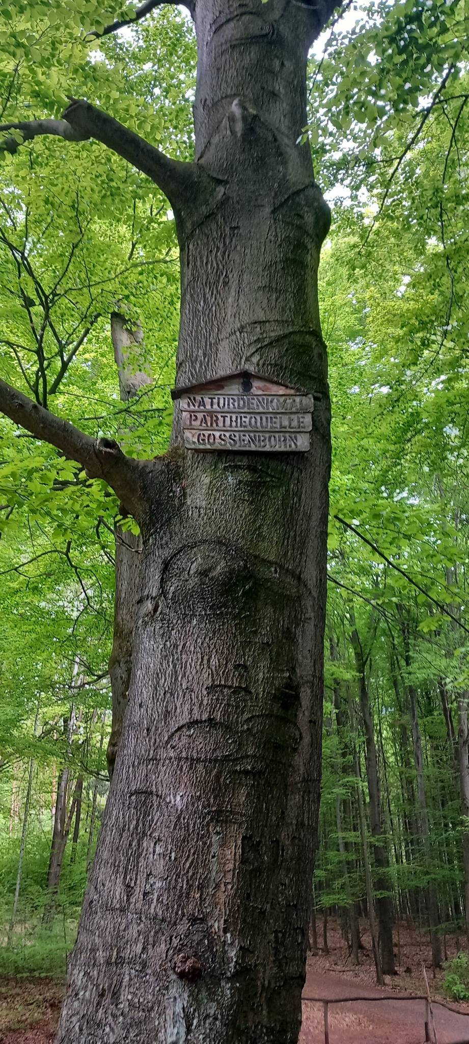 - an der nächsten Weggabelung (Kreuzung mit 5 Abzweigen) geht es links im spitzen Winkel ca. 100 m zurück bis zur Parthequelle