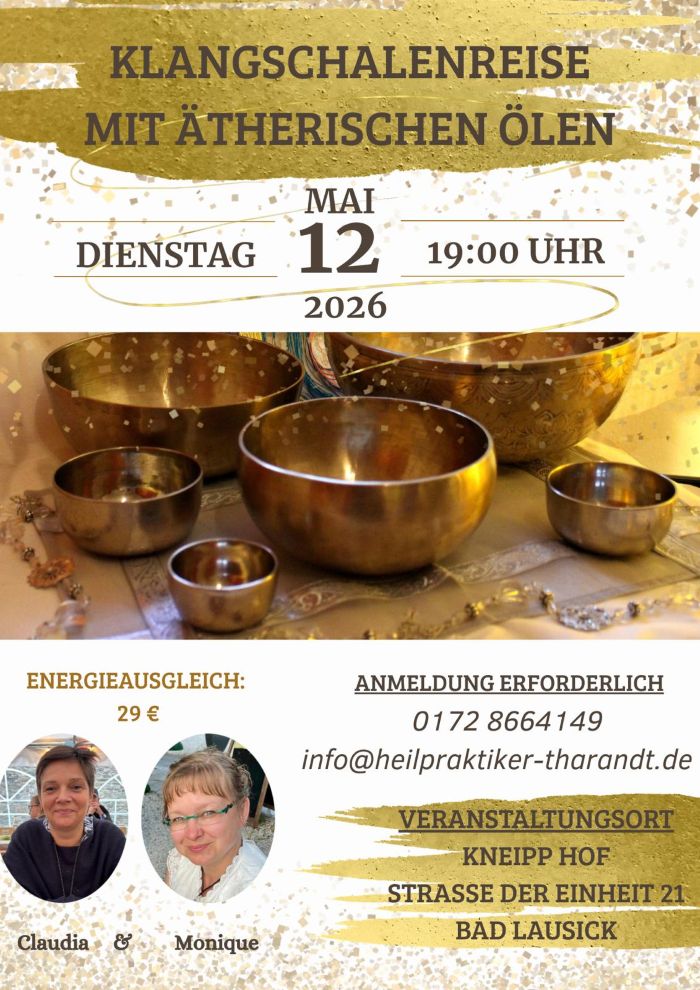Tauche ein, in die Entspannung - begleitet von Klängen traditioneller Klangschalen und dem zarten Duft ätherischer Öle!